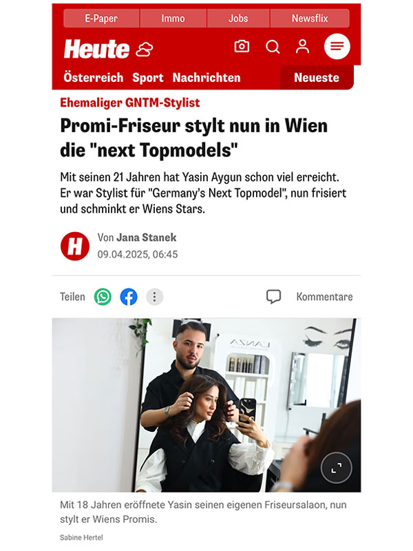 Willkommen bei Beauty Salon Yasin Aygün – Ihrem professionellen Friseur für Damen, Herren und Kinder in Wien. Wir stehen für exzellente Handwerkskunst, hochwertige Produkte und ein stilvolles Ambiente, das zum Wohlfühlen einlädt. Unser Team aus erfahrenen Stylisten, Friseurmeistern und Make-up Artists vereint Kreativität mit Fachwissen und bietet Ihnen individuelle Beratung sowie perfekte Ergebnisse – ob für den Alltag oder besondere Anlässe. Vertrauen Sie auf Qualität und Zuverlässigkeit – genau das, wofür wir stehen.